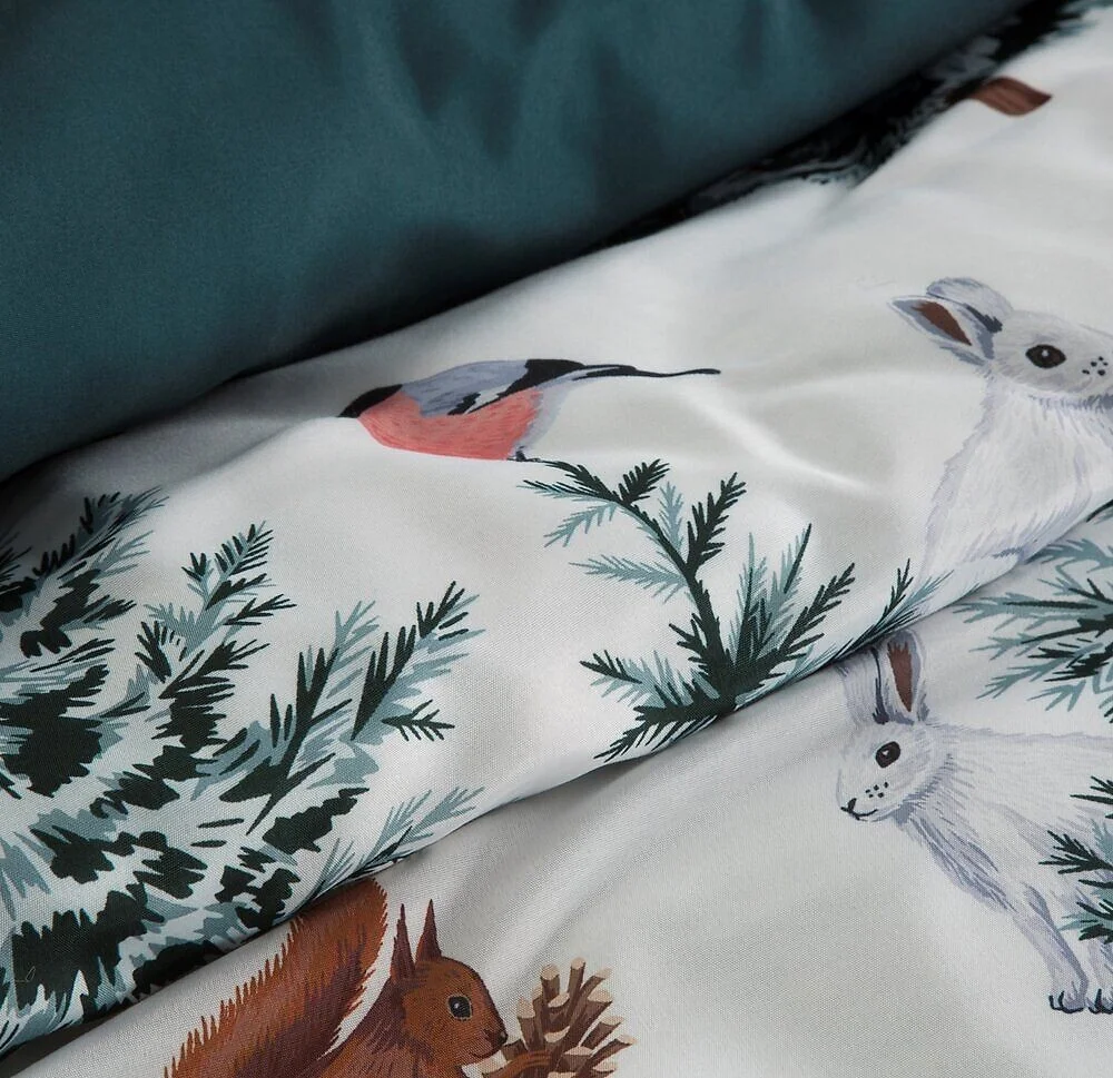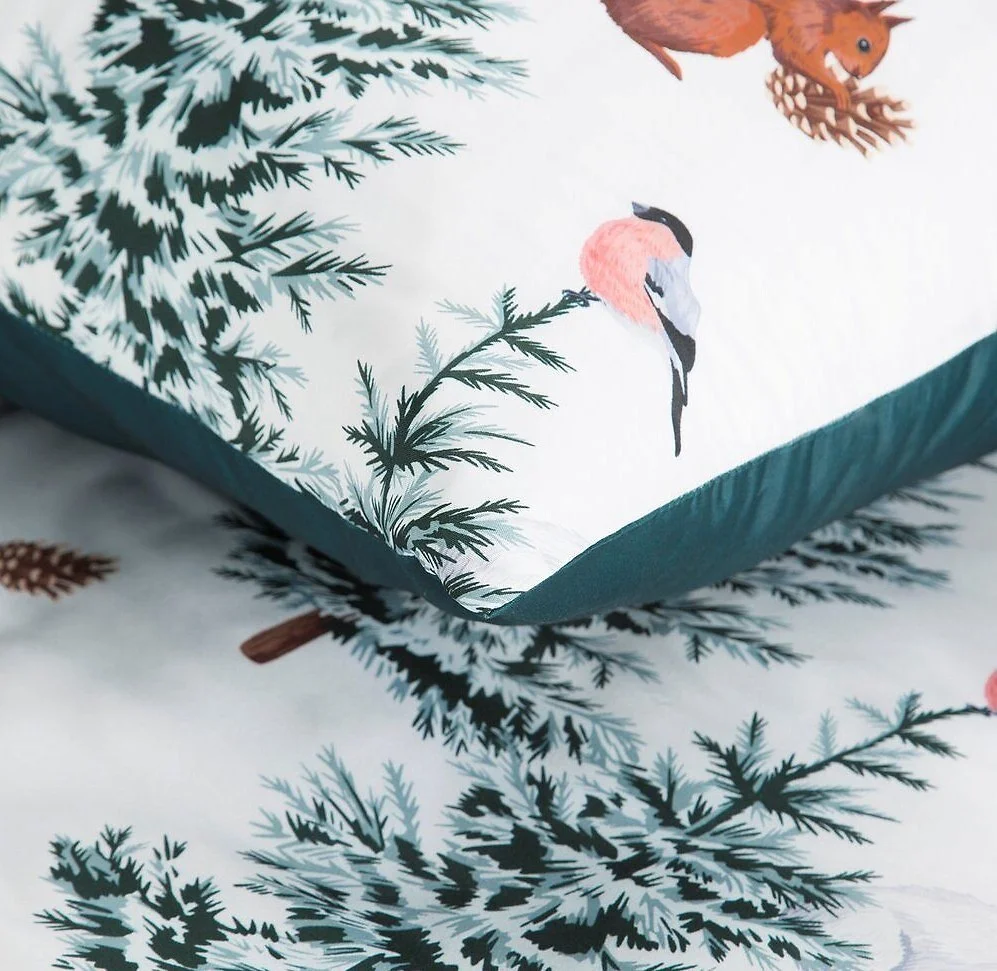 Komplet pościeli - delikatna tkanina z satynowym połyskiem - zimowy wzór z lisem - poszwa na kołdrę 160x200 - dwie poszewki na poduszkę 70 x 80 - poszwa i poszewki zapinane na suwak - daje poczucie komfortu podczas snu - szybko schnie i mało się gniecie - świetny pomysł na prezent "pod choinkę".    Skład: 100% poliester