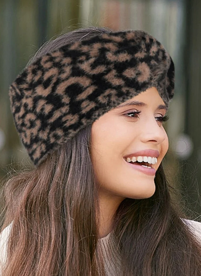 Opaska damska - miękka i miła w dotyku przędza - modny wzór panterki - idealna na chłodniejsze dni   Skład: 100% poliamid