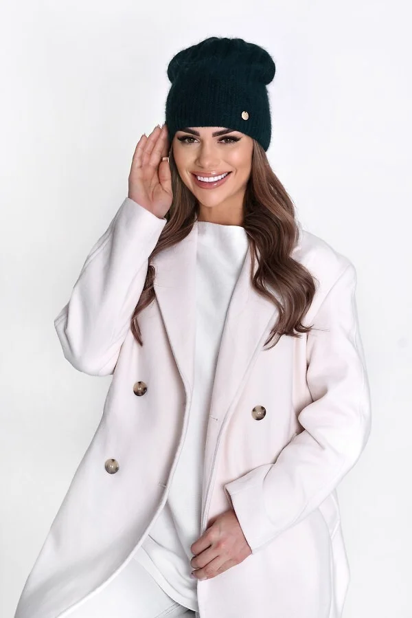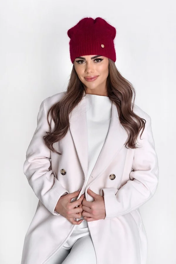 Elegancka czapka damska - jednowarstwowa - o delikatnym splocie - miękka dzianina z włoskiem - naszywka z logo firmy   Skład: 50% angora, 50% nylon