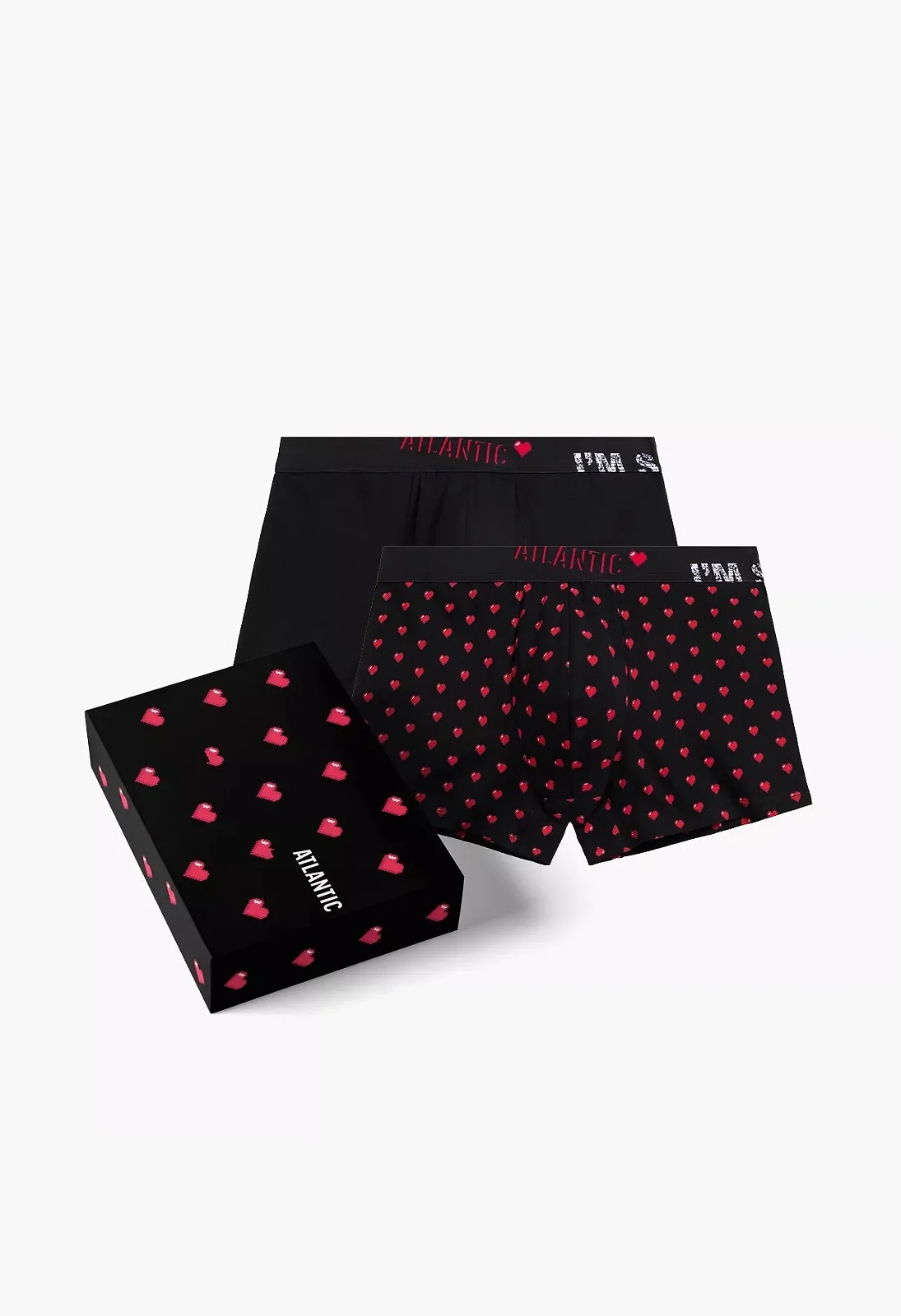 Bokserki męskie - wysokiej jakości bawełna - ozdobione kolorowym wzorem w serca - w pasie szeroka guma z napisem "ATLANTIC" - pakowane w pudełko po dwie sztuki   Skład: 95% bawełna, 5% elastan