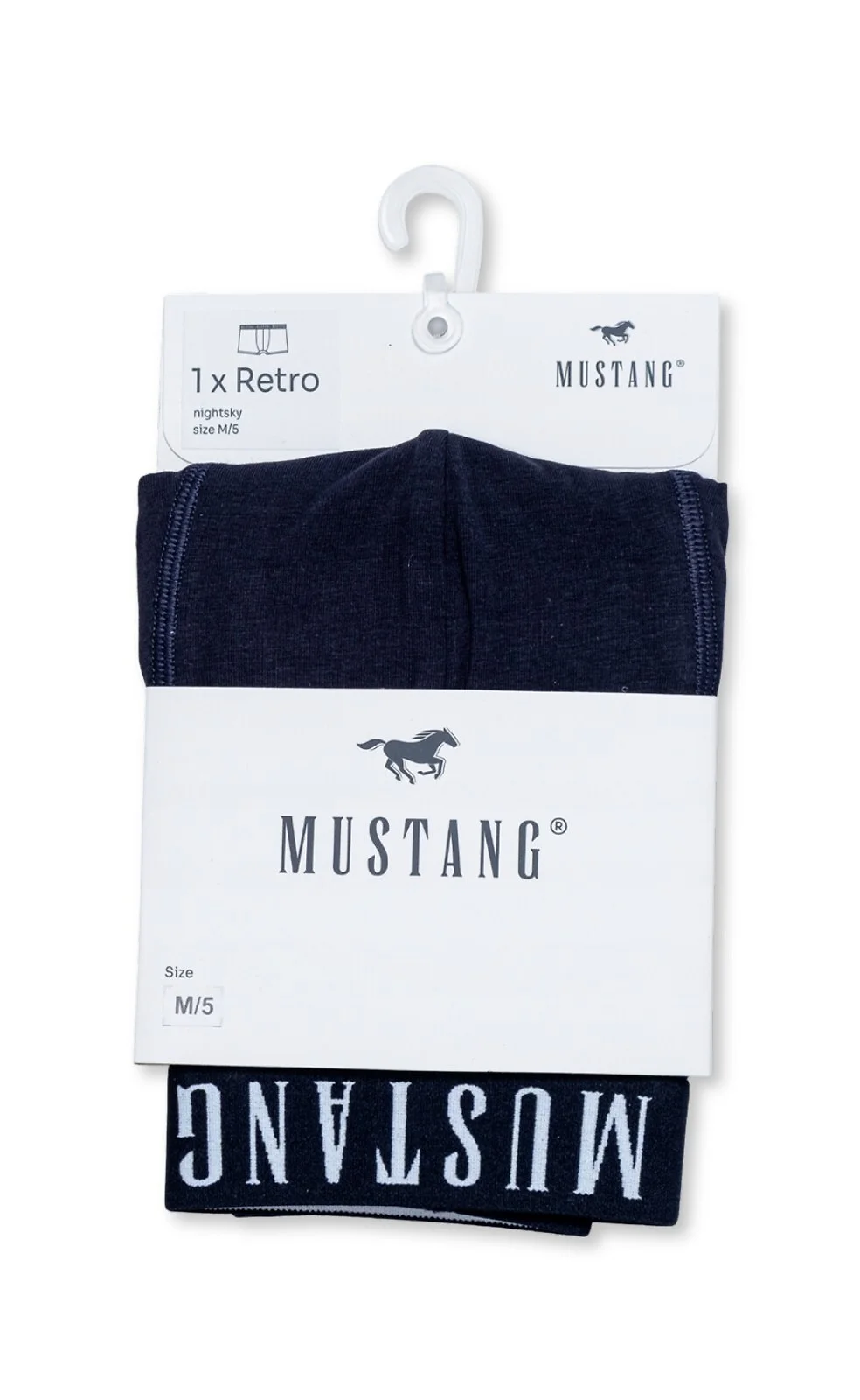 Bokserki męskie - z wysokiej jakości bawełny - w pasie szeroka, wygodna guma z logo marki MUSTANG - płaskie szwy sprawiają, że bielizna w żaden sposób nie krępuje ruchów   Skład: kolor 95% bawełna, 5% elastan