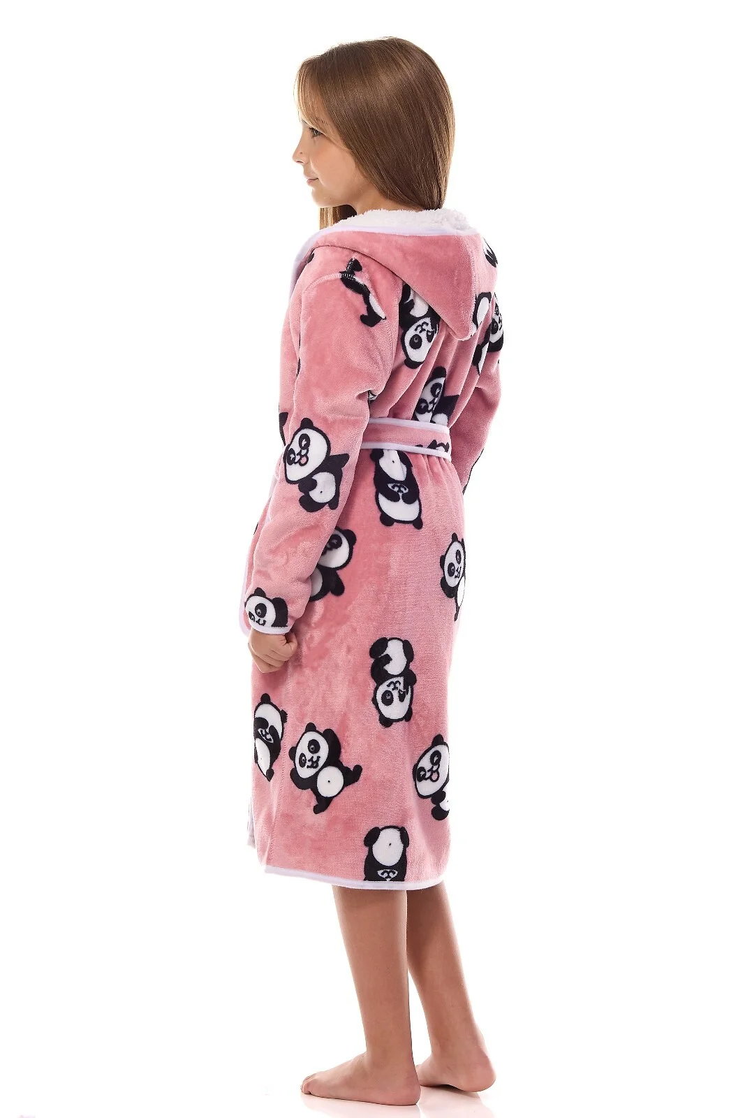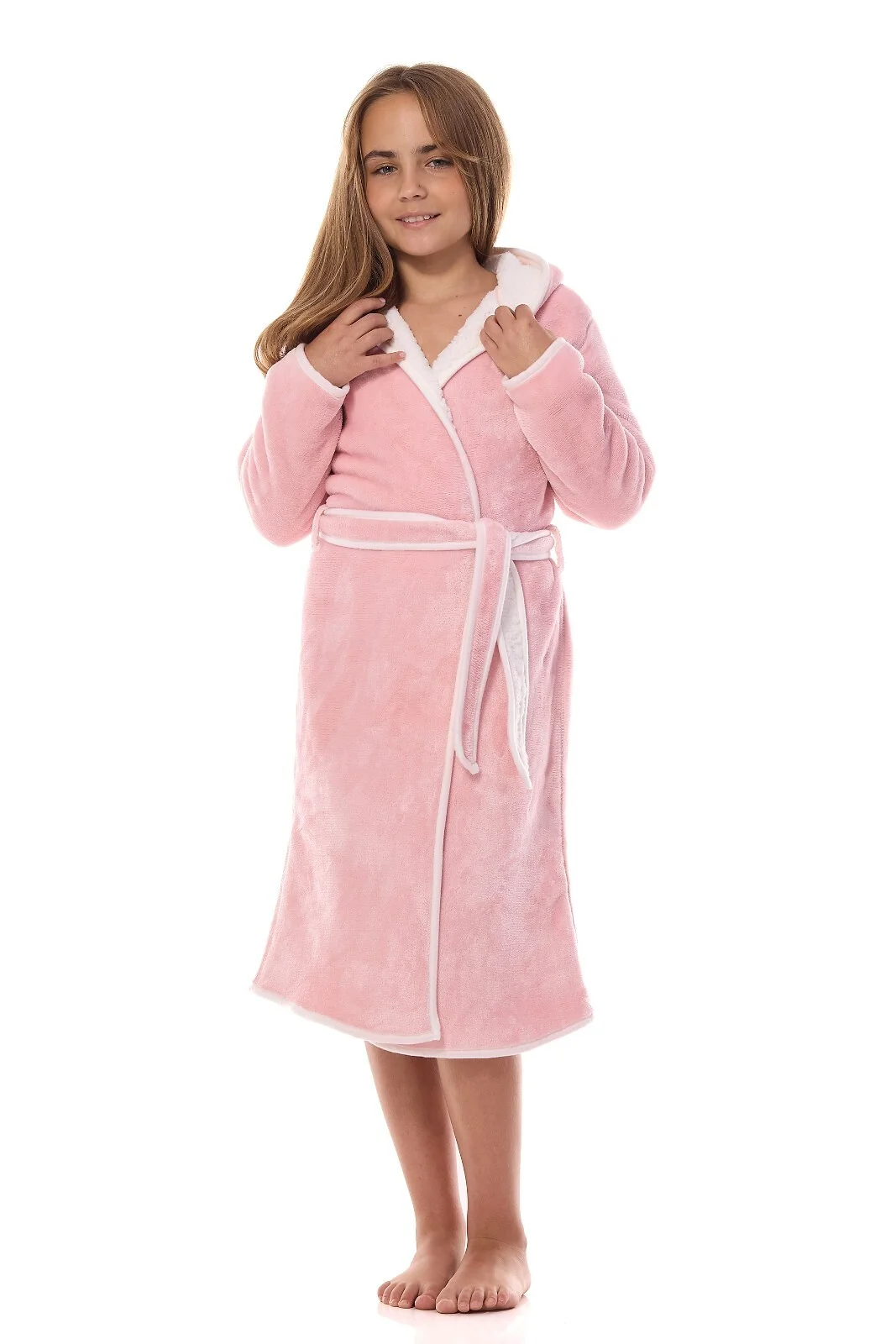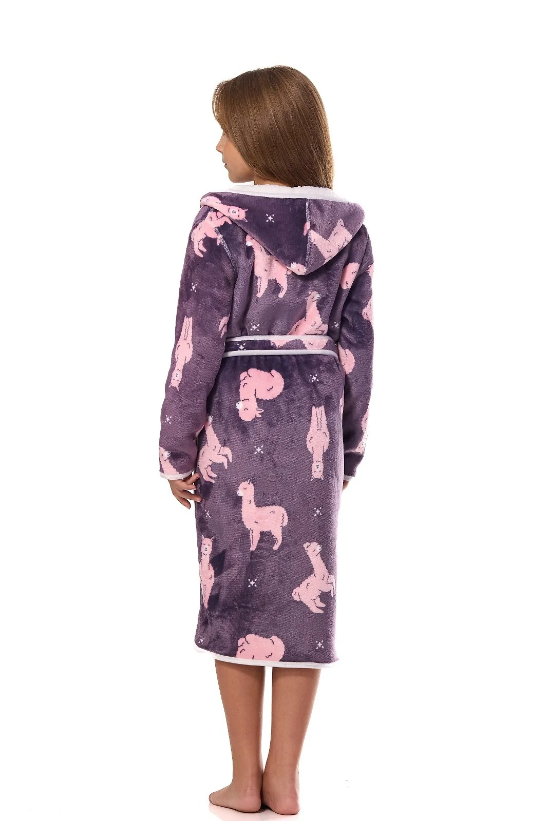 Szlafrok dziewczęcy z kapturem - miły materiał typu soft - ozdobny wzór w serca - wiązany w pasie - na wysokości bioder wygodne kieszenie   Skład: 100% poliester