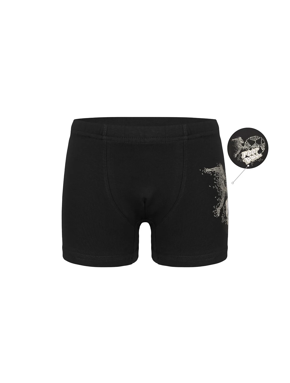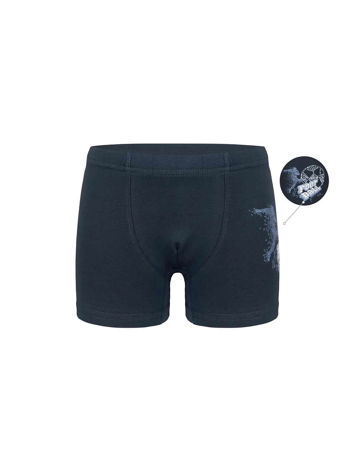 Bawełniane bokserki chłopięce - w pasie guma obszyta dzianiną - bezuciskowe wykończenie nogawek - doskonale przylegają do ciała - bok ozdobiony nadrukiem - pakowane w foliowy woreczek - dostępne kolory: granatowy, jeans, grafitowy, miętowy, popielaty Skład: 95% bawełna, 5% elastan