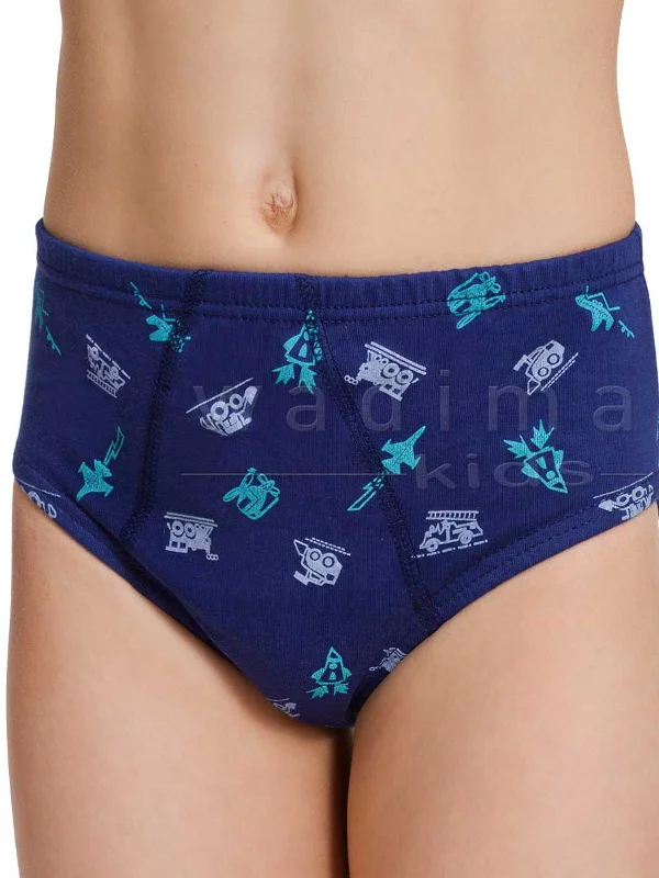 Chłopięce slipy wykonane z wysokogatunkowej bawełny, z drobnym nadrukiem o różnej tematyce. Mix kolorów uwzględnia sezon – ciemniejsze na chłodniejsze dni, jasne na lato. Wygodne, trwałe i bardzo popularne. Pakowane po cztery sztuki.