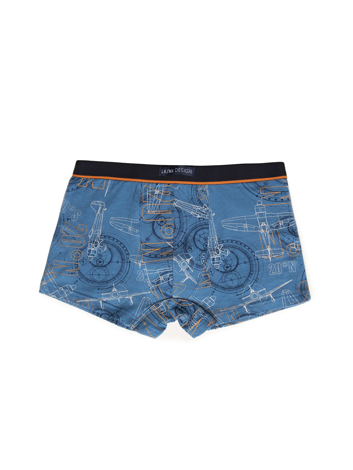Bokserki chłopięce pakowane w pudełko wykonane z wysokiej jakości wzorzystej bawełny. W pasie komfortowa gumka.