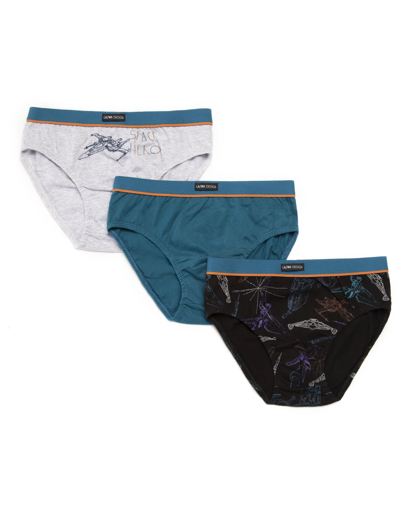 Slipy chłopięce wykonane z wysokiej jakości bawełny. W pasie szeroka guma z naszywka logo LAMA. Pakowane w pudełko po trzy sztuki.