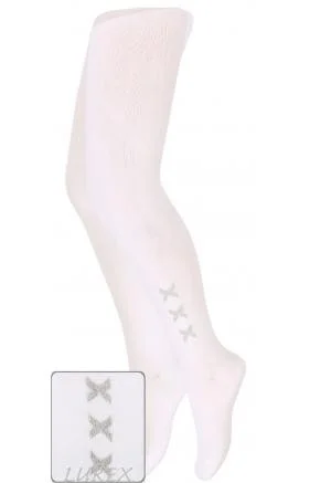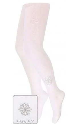 Rajstopy bawełniane z delikatnym wzorkiem nad kostką z lurexu.